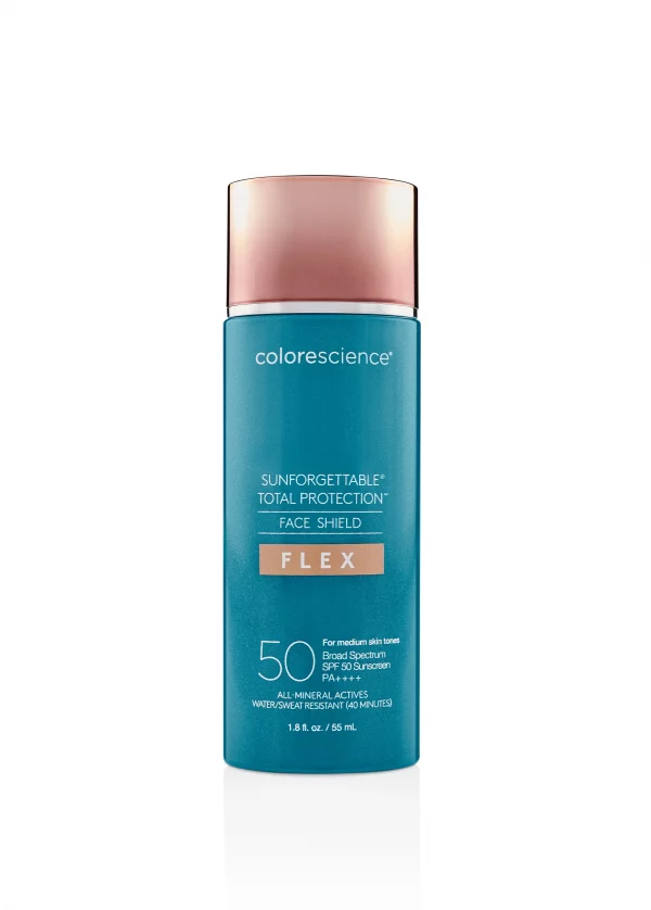 Sí, Face Shield Flex SPF 50 Medio, parte de la línea Colorescience Flex, es resistente al agua y al sudor hasta por 40 minutos, lo que lo hace ideal para días calurosos o actividades al aire libre.